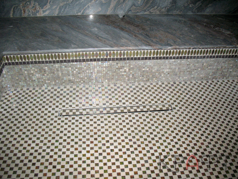 Канализационный трап в душевой хамам (строительный и чистовой варианты)